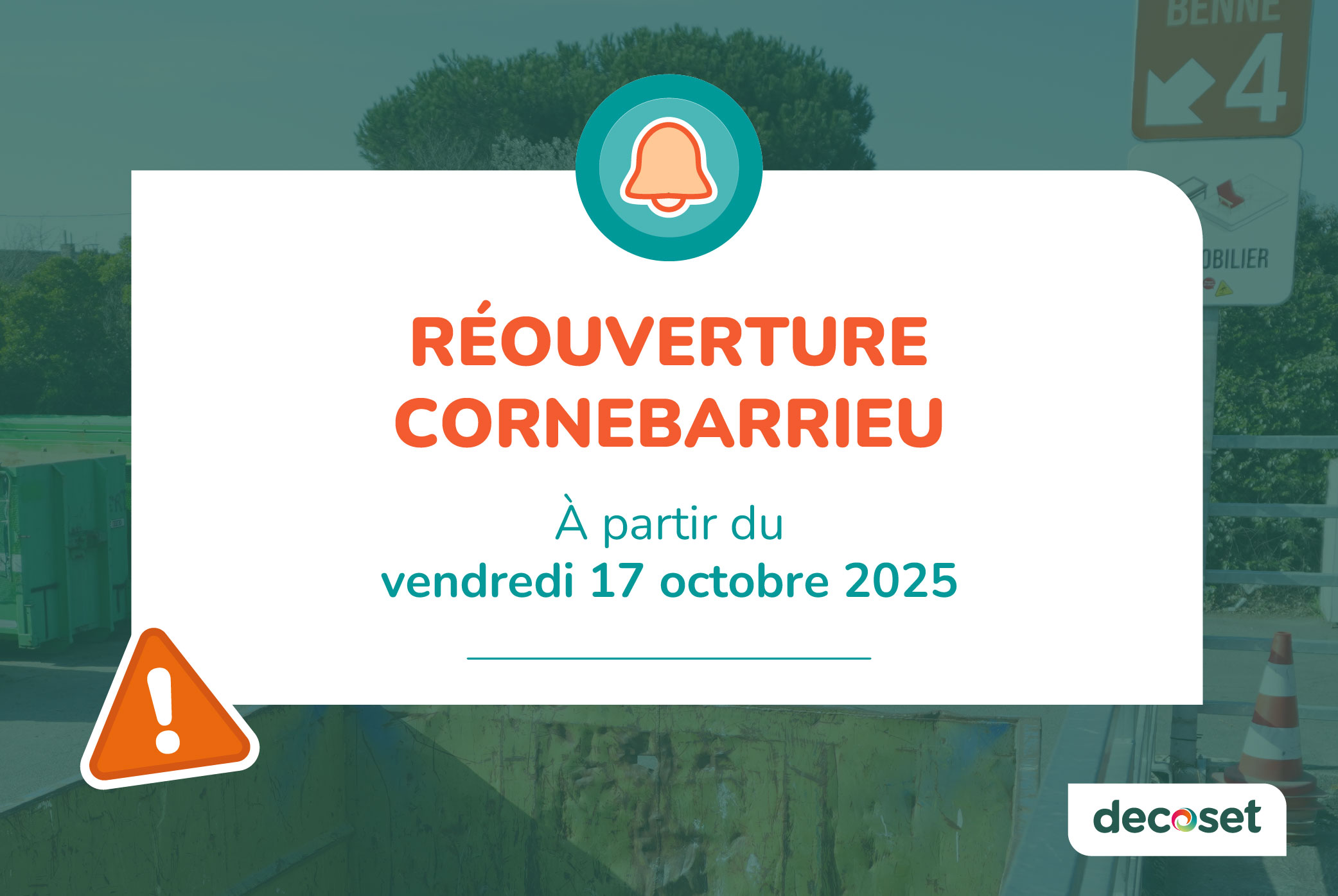Réouverture de la déchèterie de Cornebarrieu à partir du 17/10/2025 au matin !
