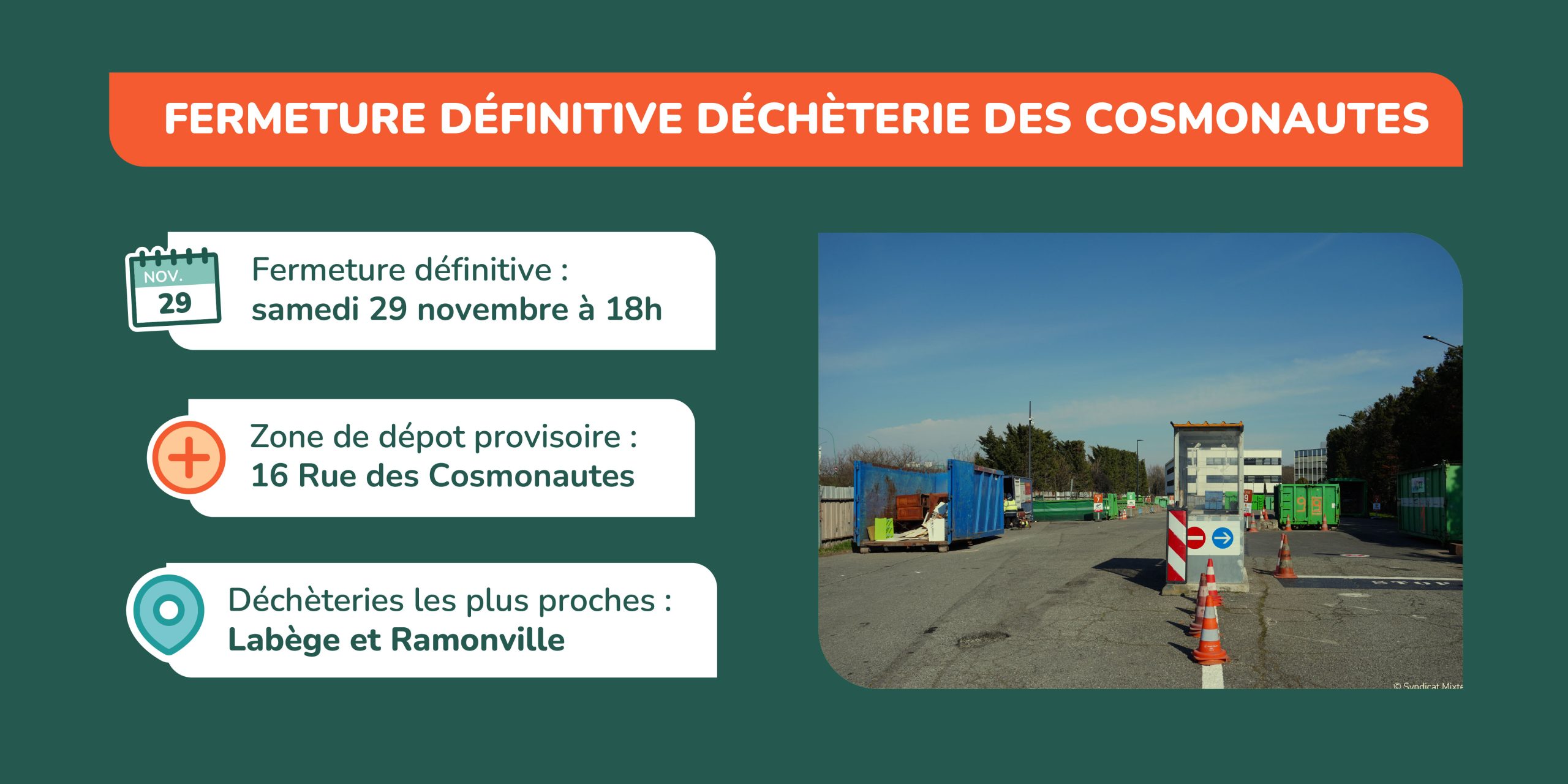 La déchèterie des Cosmonautes, située dans le quartier de Montaudran, fermera ses portes définitivement le 29 novembre 2025 au soir.