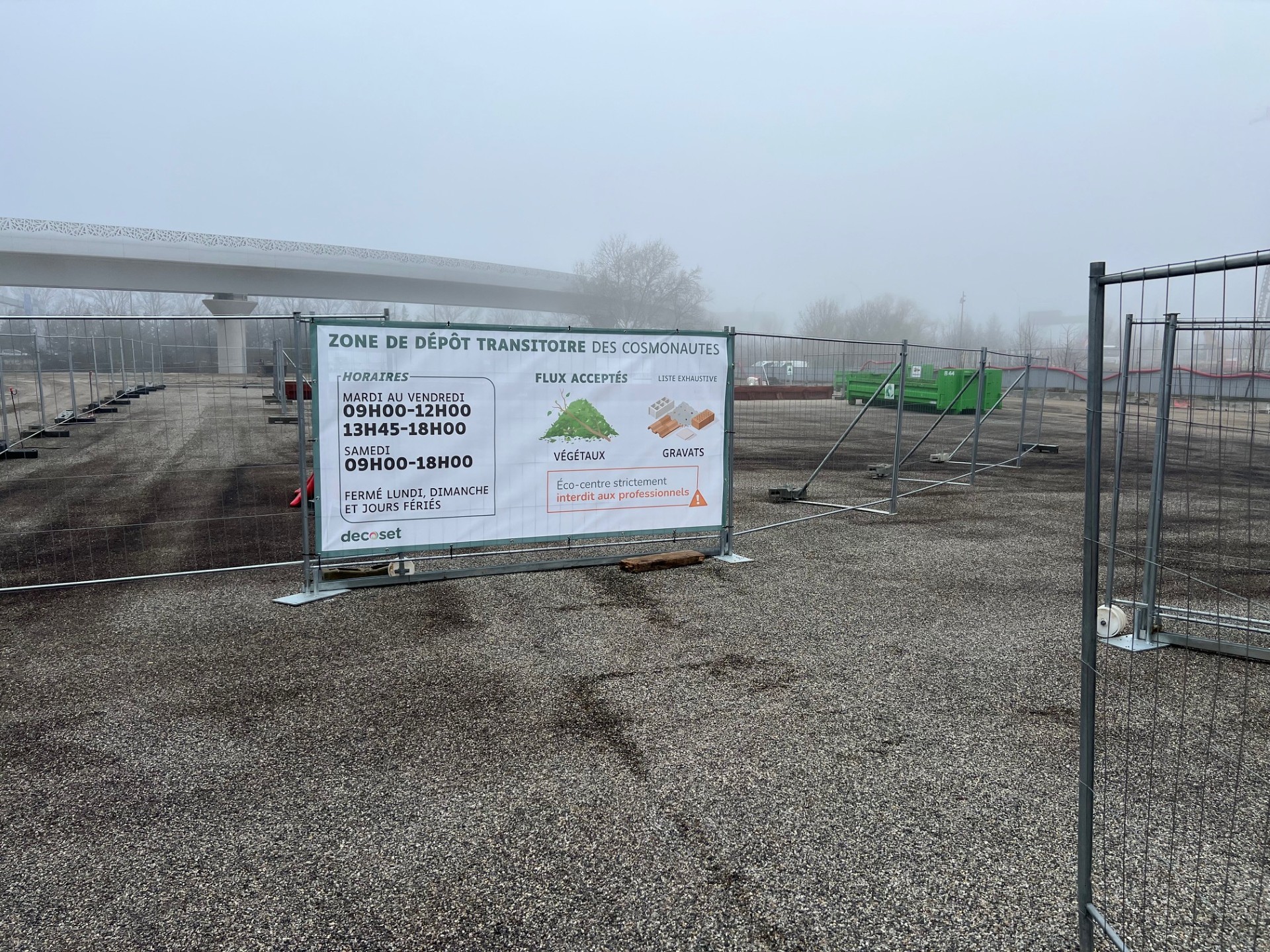 La déchèterie des Cosmonautes est définitivement fermée. Une zone de dépôt transitoire a été ouverte pour les gravats et les déchets verts.